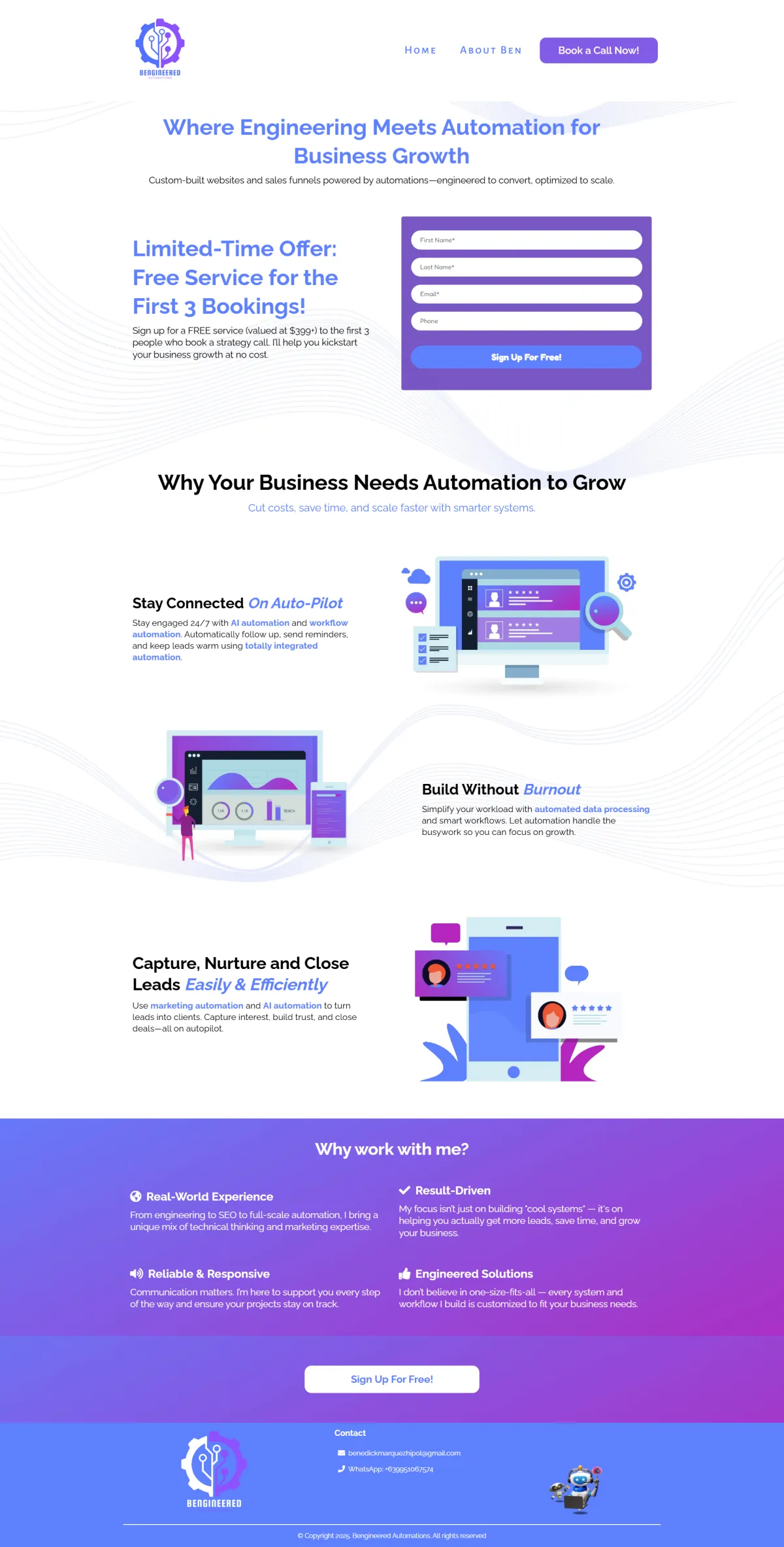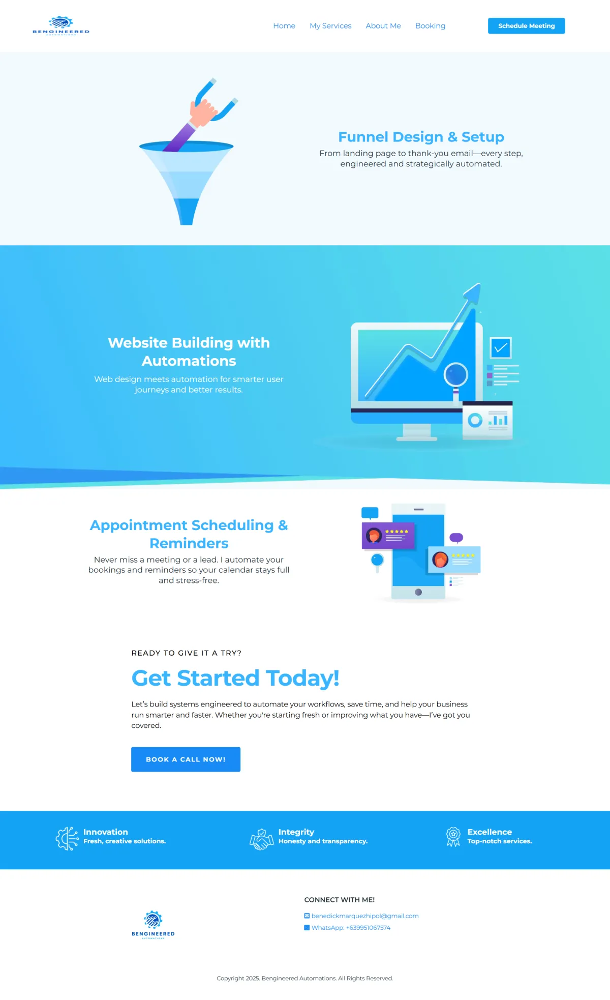 You don’t need extra tools. You need a strategy that delivers. At Bengineered Automations, I provide ready-to-use digital systems that save time, generate leads, and increase conversions.